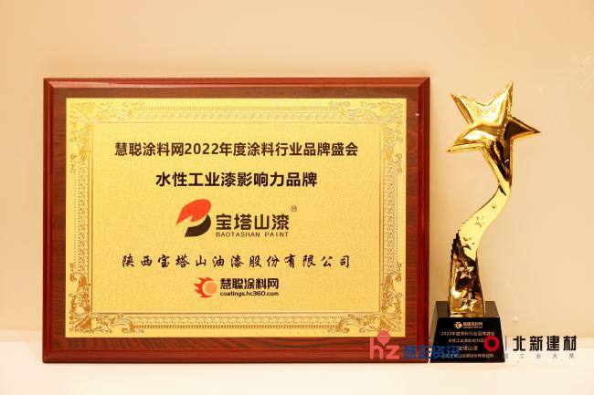 2022年7月,在2022年度涂料行業(yè)品牌盛會(huì)上,寶塔山漆榮獲“水性工業(yè)漆影響力品牌”。