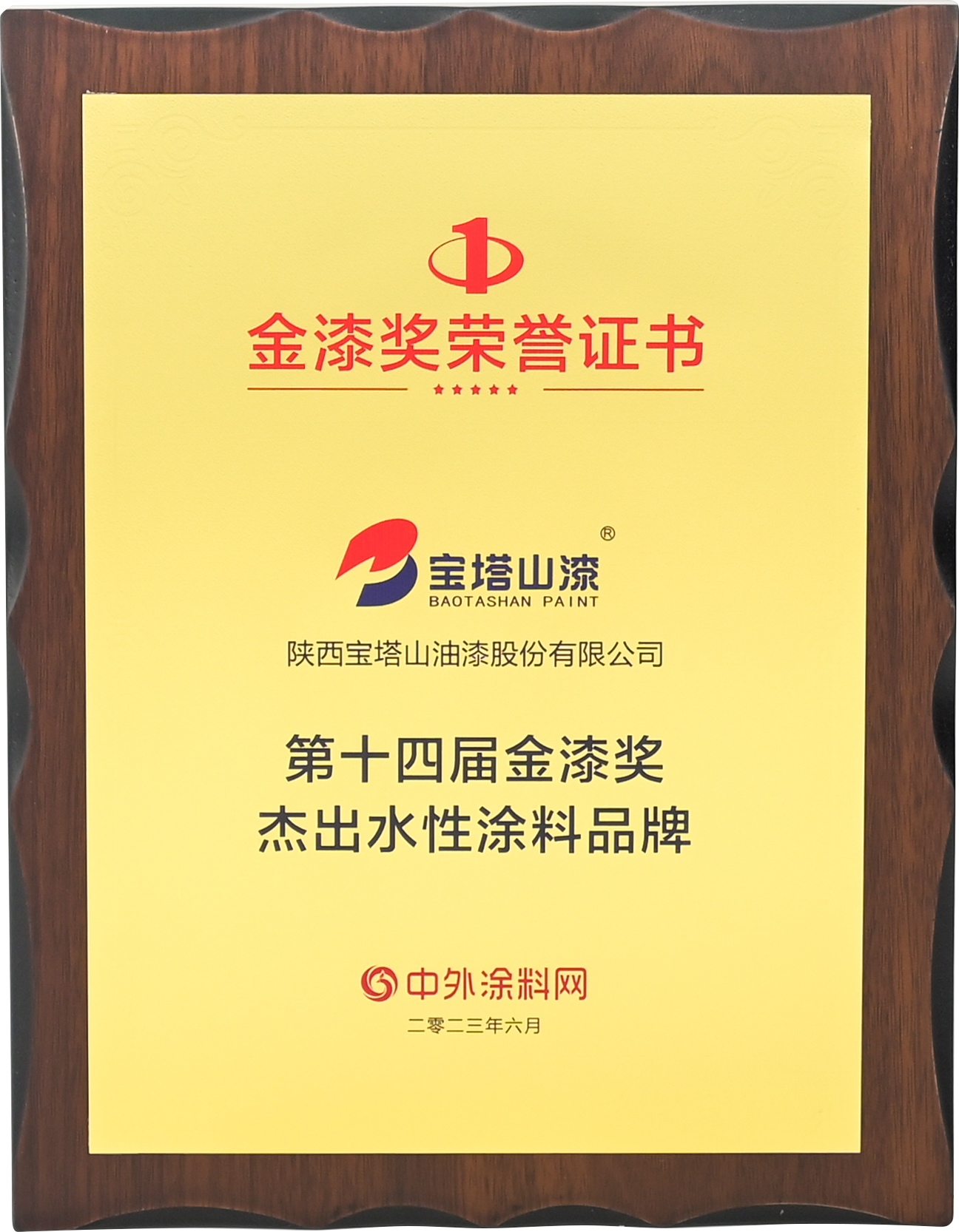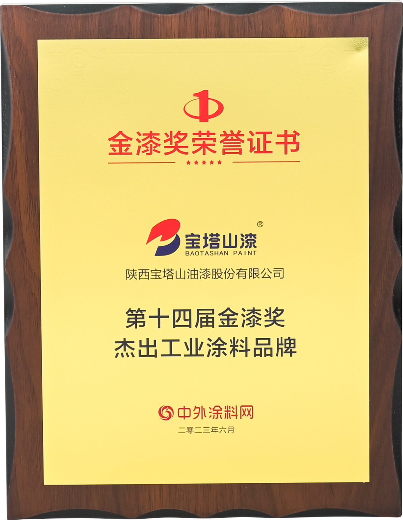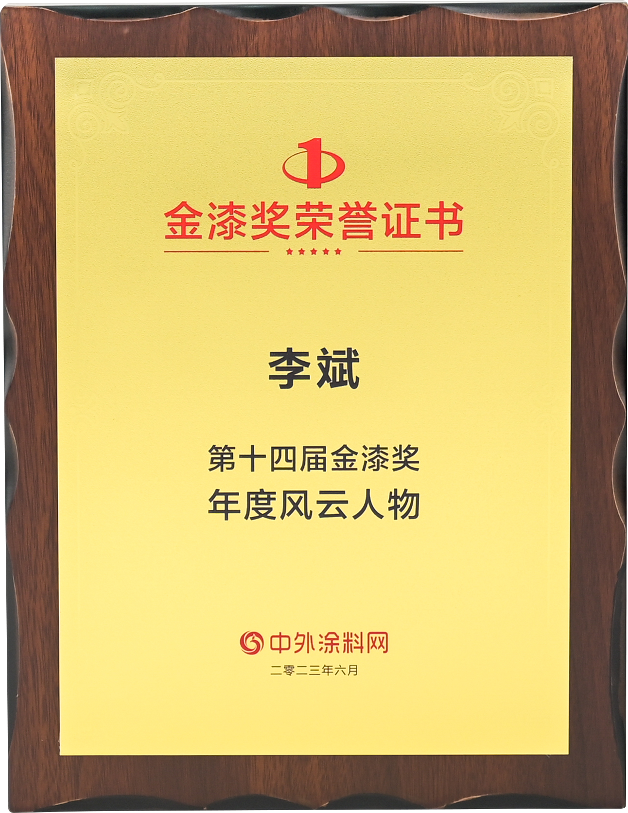2023年6月,寶塔山漆李斌同志在中外涂料網(wǎng)第十四屆金漆獎(jiǎng)評(píng)選活動(dòng)中被評(píng)為“年度風(fēng)云人物”。